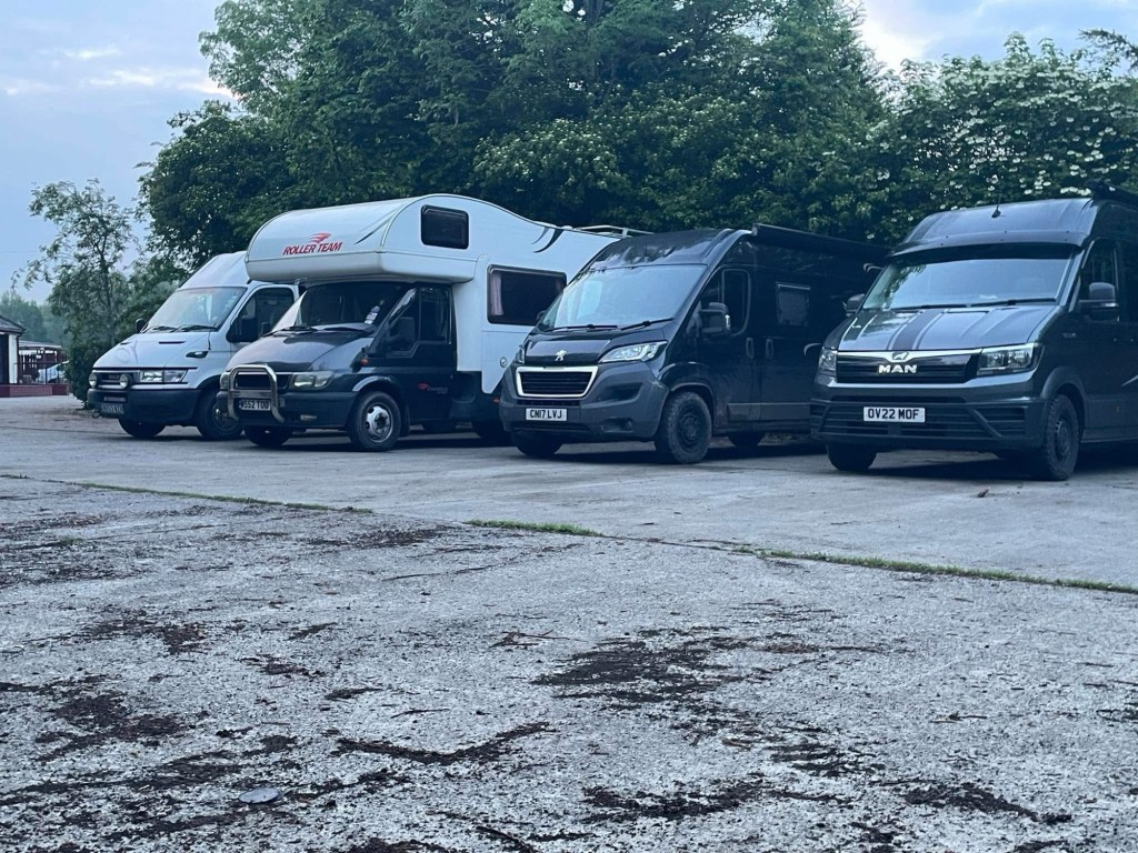 Experience a delightful camper van stopover with a concrete car park, providing 24-hour toilet/shower facilities in the serene Welsh hills.
